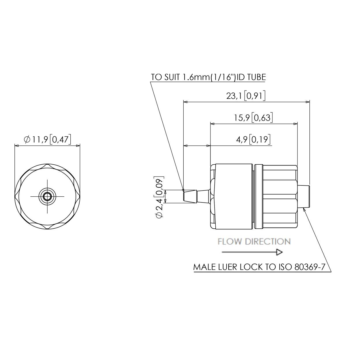 Connection 1 To suit 1/16" (1.6mm) ID Tube