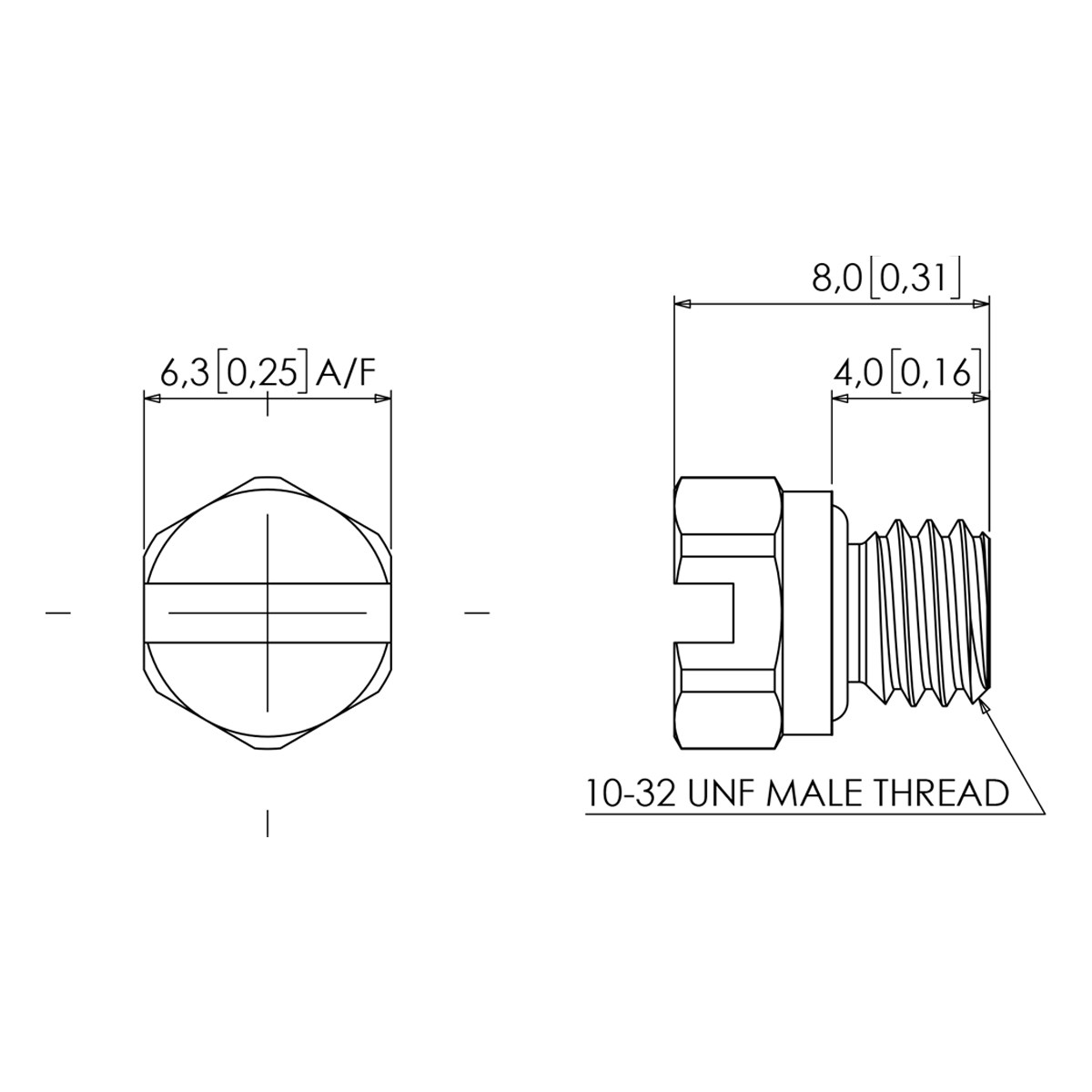 Description Nickel Plated Brass Blanking Plug, Viton (FKM) Seal, 10-32 UNF Male Thread