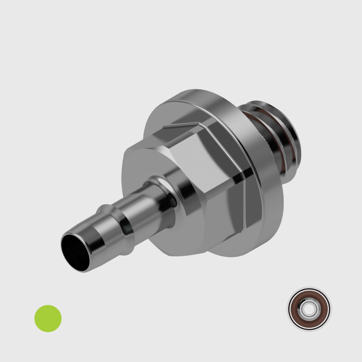 Description 316 Stainless Steel 3/32" to 10-32 UNF Easy Barb Adaptors - Various O-ring Materials