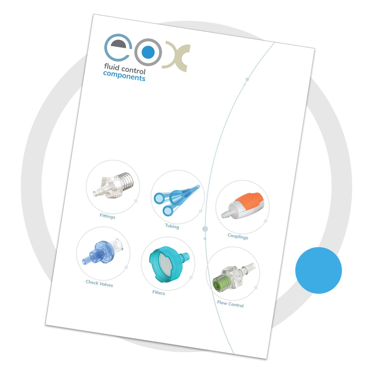A pictorial overview of products Eox can offer. Including check valves, couplings, fittings, luers, tubing, filters, pumps, valves, flow control, regulators, silencers